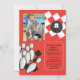 ¡Haga el fiesta siguiente de los bolos de su niño una huelga! El fondo rojo brillante tiene un modelo del tablero de damas en blanco y negro y ofrece una bola y los pernos de bolos. Apenas añada su foto preferida para hacerle el suyo. La tarjeta es fácil de modificar para requisitos particulares con su fraseología, fuente, color de la fuente y opción de seis tipos de papel.