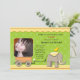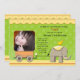 Un diseño unisex adorable que ofrece un elefante que tira de un carro con la foto de su niño en ella. El verde, fondo del lunar tiene un amarillo/un naranja, toldo horneado a la crema y con pan rallado.