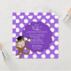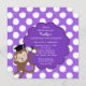 La graduación tan muy linda de la guardería que ofrecía un pequeño mono adorable en un casquillo que sostenía un diploma fijó en un fondo púrpura y blanco del lunar. ¡Personalice con su información del fiesta y usted es todo fija para ir! Haciendo juego gracias las notas, los pegatinas y franqueo disponibles en nuestra tienda en el estudio del ©Cocoa de www.celebrateitinvites.com