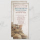 Invitación de la jubilación con botas de encaje viejas desgastadas y destetadas en estilo vintage. El texto relacionado con el género, el año, el texto honorario, la fecha, la hora, el lugar de celebración y el RSVP pueden ser personalizados.