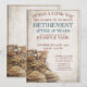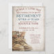 Invitación de la jubilación con botas de encaje viejas desgastadas y destetadas en estilo vintage. El texto relacionado con el género, el año, el texto honorario, la fecha, la hora, el lugar de celebración y el RSVP pueden ser personalizados.