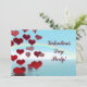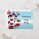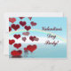 Una hermosa tarjeta El día de San Valentín con muchos corazones rojos rubíes cayendo en un mar azul. En el fondo hay un arco iris.Cambie la parte posterior a sus propios detalles de fiesta