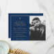 Personalice la foto y el nombre completo de su hijo (se aplica automáticamente un filtro en blanco y negro a cualquier foto que utilice, se puede desactivar utilizando la función "personalizar más adelante"). Esta elegante primera tarjeta de invitación a la sagrada comunión hace más fácil enviar tu gratitud. La cruz dorada impresa aporta un toque de elegancia a este diseño moderno. El azul marino puede cambiarse si lo desea, contacta conmigo en info@lddesignloft.com si necesita ayuda.