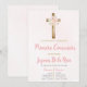 Invitación de la primera comunión de Pink Floral en español. Invitación de la primera comunión para la niña