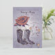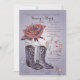 ¿Celebrando una ocasión especial con un tema del suroeste? Esta hermosa invitación es perfecta para cualquier celebración feliz. Cuenta con una rosa abierta con un par de botas vaqueras y corazones y espirales caprichosos.
