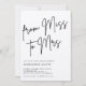 Celebra la transición de Miss a Sra. con estilo y gracia con estas invitaciones a la ducha de novias muy bien hechas. El diseño minimalista y moderno presenta caligrafía elegante en un estilo clásico, creando un estilo atemporal, sofisticado y de moda. Perfecto para la futura novia que quiere anunciar sus próximos nupcias de manera elegante y con habilidad. El diseño minimalista es versátil y se puede coordinar fácilmente con cualquier tema de la ducha de novia, lo que lo convierte en una elección ideal para la futura novia moderna. Ya sea que estés recibiendo una ducha de novia en casa o en un lugar, estas invitaciones marcarán el tono para una celebración inolvidable. Así que envíenlos hoy y prepárense para ayudar a la futura novia a celebrar su emocionante transición de Miss a Sra.