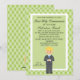 Comienza tu celebración con esta adorable invitación para ese niño especial Primera Comunión Santa. Tiene un verde cal con un borde de puntos de polka verde claro. en el centro hay un centro verde claro con un borde blanco alrededor. Hay un adorable chico con un traje gris con corbata azul. Él tiene el pelo de bronce. Echa un vistazo a los muchos otros elementos de esta línea, como etiquetas, franqueo, notas de agradecimiento y más.