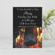 La invitación de llama de fuego de fiesta tiene una llama naranja que quema bloques de madera en la parte inferior hasta el medio y un fondo negro con un lugar para poner todo el texto de tu invitación.