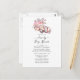 Invitación de ducha de novia o bebé con un coche antiguo adornado con rosas de acuarela rosa personalizable a los detalles de su evento.