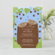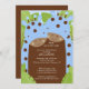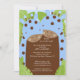 Invitación de Baby Shower de Adorable Twins con un par de jirafas azules gemelas con puntos de polka marrones colocados en un fondo de hoja de selva. Artículos que coinciden disponibles en nuestra tienda. Perfecto para un niño mellizo con ducha de bebé. Estudio ©Stockberry