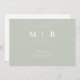 Sage ligero simple y brillante e invitación a la boda en un monograma blanco. Boda. Nombres primero y último. Moderno. Padres de novias en la lista.