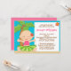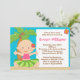Invitación de Baby Shower de Luau. Cuenta con una niña que usa falda de césped en la arena con una palmera y flores de hibisco. Algunos elementos JDDigiDesign
