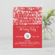 Invitación de Luces de Navidad de Cuerda Festiva Roja. Personalice para cualquier evento. Todo el texto es editable en el anverso y reverso. Úselo para una fiesta de compromiso, boda, despedida de soltera, fiesta de cumpleaños, etc.