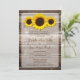 Invitación de madera rústica 1,0 de la boda del girasol