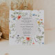 Invitación a la boda con un marco acuarela de flores silvestres y vegetación. Personalizar con su información.