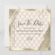 Invitación de marfil para guardar la fecha con purpurina dorada