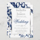 Invitación de Mármol Azul Marino, Plata y Blanco