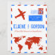 Una invitación de boda divertida e informal con el clásico tema del correo azul y rojo para el viajado cliente.