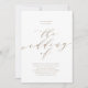 Magníficas invitaciones a la caligrafía romántica en tendencia, con letras a mano y una simple tipografía de escritura. La tipografía encantadora y todo el texto negro hacen que este diseño se destaque verdaderamente. Estas sencillas invitaciones románticas son modernas y elegantes, con un toque de moda pero tradicional.