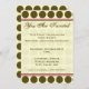 Una invitación con un fondo de lunares marrones y borde rosa. El lado opuesto presenta un marco circular rosa a juego con el texto "Estás invitado". Personaliza el texto con los detalles de tu ocasión.