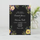 Elegante, moderno, rústico, cálido, florido, dorado floral y la invitación a la boda negra con flores de color agua, girasoles y vegetación. Ideal para celebrar bodas en invierno o en otoño.
