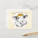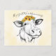 Lápiz lindo, ilustrado, dibujo a mano de una vaca que usa girasoles amarillos como una cabeza de corona, y crea una vibración de moda bohemia muy bohemia. Lavado de fondo con acuarela amarilla. El texto del guión de arriba de la vaca dice, "Hey, Todos, Somos Moooooooooooooooooooooving..." Plantillas personalizadas en la parte posterior.