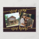 Que tu familia y amigos sepan las buenas noticias de tu movimiento y les desees un feliz año nuevo. Esta tarjeta postal de invitación para años nuevos cuenta con 2 fotos, escritura tipográfica ''nueva casa de año'' y tu mensaje en la parte trasera.