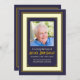 Azul marino, oro y marfil en memoria de la invitación de muerte por foto obituaria, en memoria. Este es un diseño clásico y elegante que es masculino. Es un diseño sencillo con bordes alrededor de una plantilla de fotos. Toda la redacción puede ser personalizada y la foto puede cambiarse. Hay mucho espacio en la parte trasera para añadir cualquier información obituaria que quieras añadir.