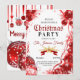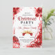 Es hora de Navidad, invitemos a tus amigos y sus familias, Esta elegante invitación roja y blanca incluye decoraciones de árbol de Navidad, copos de nieve blancos y cintas rojas.