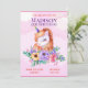 Una hermosa invitación de unicornio para la fiesta de cumpleaños de su hijo.
