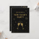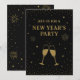 Celebra el Año Nuevo con esta elegante invitación a dos caras. Con un fondo negro elegante y confeti dorado brillante, fuegos artificiales y acentos festivos, la parte delantera muestra los detalles de tu celebración mientras que la parte trasera decorativa completa el diseño. Perfecta para fiestas de Nochevieja, reuniones de cuenta regresiva y celebraciones navideñas.