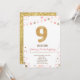 Invitación de Noveno Cumpleaños de Purpurina Gold