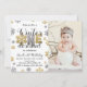 Invitación de invierno con copos de nieve de oro y plata para celebrar el primer cumpleaños de tu pequeño copo de nieve. Ideal para niños y chicas.