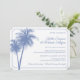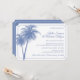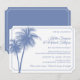 Invitación de recepción de boda en casa. Esta invitación es la forma perfecta de invitar a sus invitados a celebrar su boda reciente. Las dos palmeras y el borde están configurados en azul aciano, pero puede cambiar el color a lo que desee simplemente cambiando el color de fondo.
