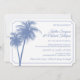 Invitación de recepción de boda en casa. Esta invitación es la forma perfecta de invitar a sus invitados a celebrar su boda reciente. Las dos palmeras y el borde están configurados en azul aciano, pero puede cambiar el color a lo que desee simplemente cambiando el color de fondo.