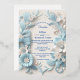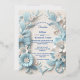 Tarjeta de boda única, elegante, blanca y azul cielo