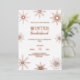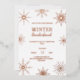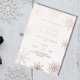 Una invitación de cumpleaños de invierno para un año de cumpleaños con color de papel de aluminio rosa dorado con copos de nieve y detalles de invitación de cumpleaños personalizados. Puede editar los campos según su evento. También cambie el color del papel de aluminio de rosa dorado a plata y oro. Perfecto para invitación de cumpleaños número 1.