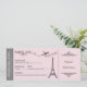 Aquí está un pase de abordar con tema de París a doble cara que puedes usar en tus eventos especiales.