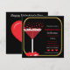 Una encantadora invitación del Partido Día de San Valentín con una copa de cóctel y burbujas de corazón surgiendo de ella. En la parte de atrás hay un gran gráfico del corazón con Feliz Día de San Valentín encima. Todo el texto se puede cambiar para adaptarlo a sus propios requisitos.