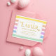 Un fondo de rayas pastel brillante con un diseño de texto sencillo y una tipografía festiva de "Pascua" en oro. Personalizar el título del evento para el Brunch de Pascua, la caza de huevos o el fiesta de Pascua. Todo el texto es editable excepto para la "Pascua" central en oro. El color de fondo es el personalizable.