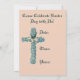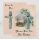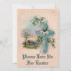 Esta vintage imagen de la postal cristiana de Pascua que muestra una cruz hecha de flores azules con una hermosa granja en primavera al fondo se reimprime aquí en esta invitación.