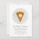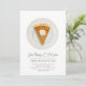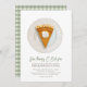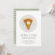 Esta invitación única muestra una rebanada de pastel de calabaza naranja de acuarela con una cucharada de crema batida en un plato vintage de acuarela. La parte trasera de la tarjeta presenta un gingham verde claro de acuarela. La tipografía es un título de guión verde con detalles de fiesta inspirados en el vintage en la fuente debajo.