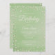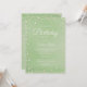 Invitación con hermosas perlas sobre un fondo de salvia verde claro.