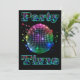 Esta invitación incluye una gran bola de disco colorida y las palabras FIESTA TIME en la parte delantera y una pequeña bola de disco en la parte trasera con un texto de invitación a la fiesta. Utilice el botón personalizar para cambiar o borrar cualquier texto de la parte posterior. El texto del frente NO SE PUEDE cambiar. Personalice la parte posterior de esta invitación con los detalles de su evento. Cambie, agregue o elimine líneas de texto que se adapten a su evento. También se pueden cambiar los estilos de fuente y los colores de fuente. Utilice esta plantilla de invitación para fiestas de cumpleaños, recepciones u otros eventos.