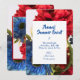 ¡Los picnics de verano son muy divertidos! Ya sea un picnic, o algún otro evento; a tu suposición te encantará ver esta invitación patriótica y de colores vivos. Las flores rojas blancas y azules son vívidas y el texto es muy atractivo. Comience a planear su emocionante evento con una hermosa invitación.