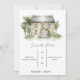 Esta es una simple invitación para guardar la fecha con un fondo blanco liso con una pintura de una mansión en la parte superior. Contiene el lugar, el nombre de la pareja y la fecha.