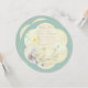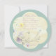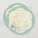 Una invitación única de la fiesta de bienvenida al bebé que ofrece un pequeño pájaro de la acuarela en una rama. La forma total de la flor se acoda sobre un fondo azulverde.