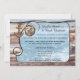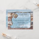 Invitación de postal de boda elegante y rústica con una imagen del océano enmarcada por un nudo de ancla y cuerda y madera desgastada. Esta invitación es perfecta para una recepción de boda solamente o celebración de fuga con un tema náutico.