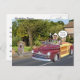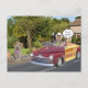 Una postal personalizable graciosa con un laboratorio amarillo conduciendo un Woodie en una calle residencial de bonito, gracias a PublicDomainPictures.net. El globo de texto del personalizable dice "¡Estás invitado!" La madera también es gracias a PublicDomainPictures.