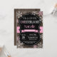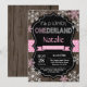 Invitación de primer cumpleaños de Chica de Onederland. Copo de nieve rosa y blanco. Primer cumpleaños. Chica 1ª Invitación de cumpleaños. Fondo de pizarra de madera rústica. Blanco y negro. Lazo rosa. Para una mayor personalización, haga clic en el botón "Personalizar" y utilice nuestra herramienta de diseño para modificar esta plantilla.